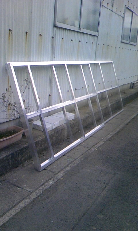 先日、製作したアルミ枠の看板は、規格品を組み立てる物だったので