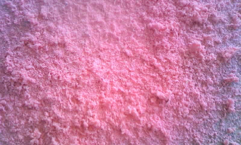 これは、赤いアクリル板を切断した時に出た切り粉です。