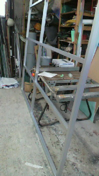アルミ枠は、ノックダウン(切断加工がしてある部材)をインパクトで、ガタガタ〜