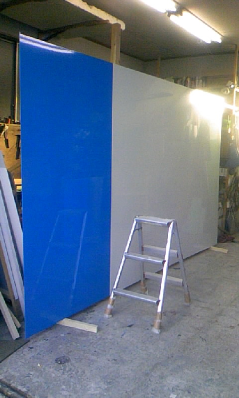 アルミ複合板を繋いで~シートを貼る作業をしています。