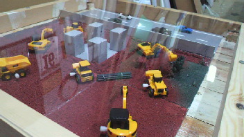 土や緑のところは、アルミ複合板の切り粉なんです。