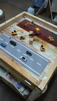 仕事の合間に打ち合わせテーブルにジオラマを製作しています。