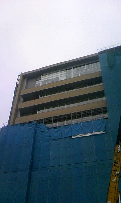 後ろを振り向けば、新庁舎の足場解体が始まってました。