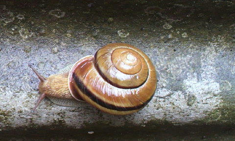お昼に雨が上がったので、庭を見ると、カタツムリがいました。