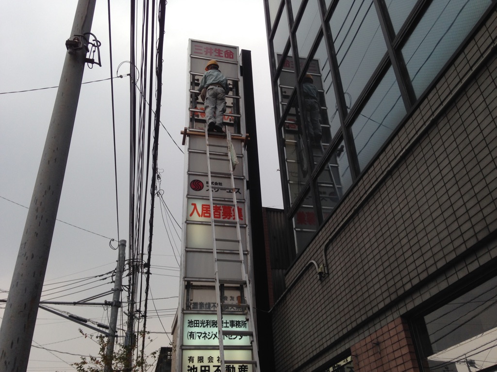 今日は、朝からビルの集合看板の