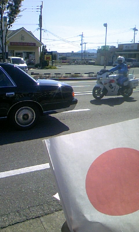 国旗を貰って喜んで~警察の車輌に旗をふっていたみたいでした。
