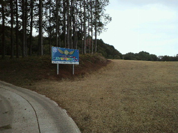 今日の午前中に、ゴルフ場のコースの中に看板設置に行ってきました。