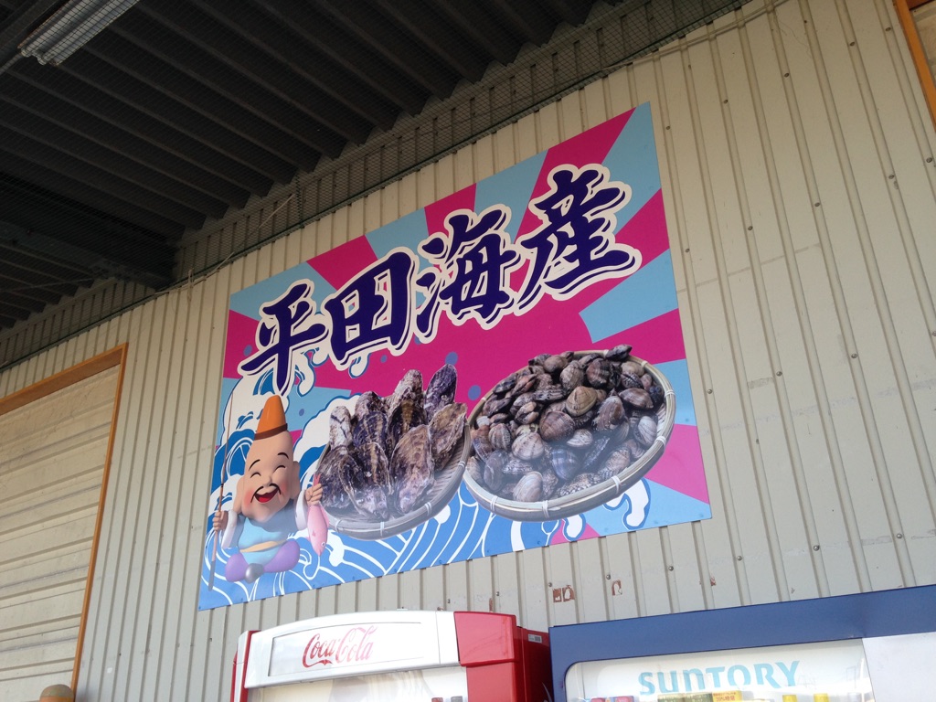 看板に載せている牡蠣とあさり~絶品ですよ!