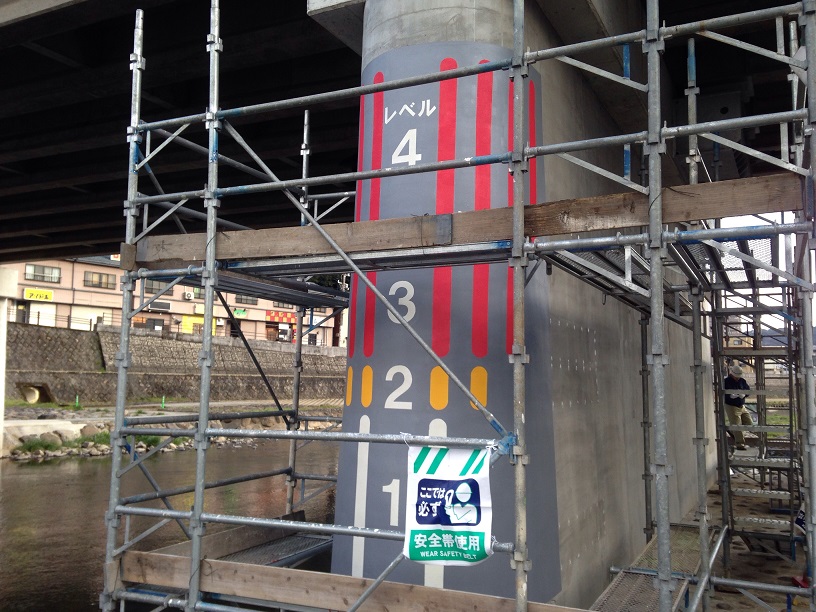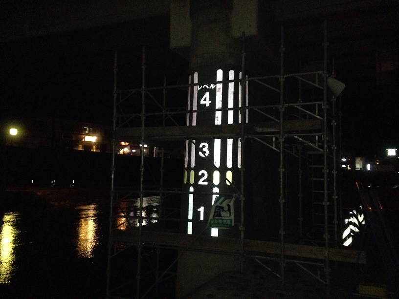 橋のコンクリート支柱に反射塗料の施工をしました。