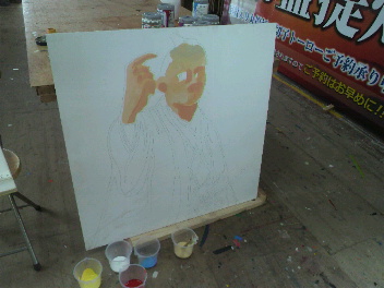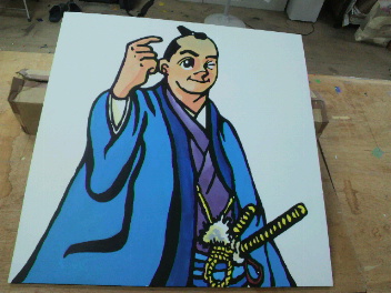 お客さんが持って来たコンパネにペンキで、イラストを描きました。