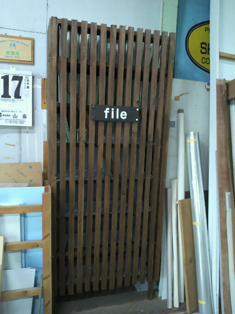 今日は、午後から工場の壁に原稿を入れる棚を作ってました。